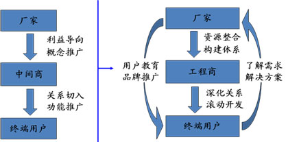 通過五大協(xié)同,夜太陽有組織的整合價值鏈資源,實現(xiàn)由“廣撒網(wǎng),多捕魚”向“精耕細作”,由“工程商導(dǎo)向”向“用戶價值最大化”的兩大營銷戰(zhàn)略性轉(zhuǎn)變。與工程商的關(guān)系也由傳統(tǒng)的純粹交易關(guān)系向互惠互利、共謀發(fā)展的合作伙伴關(guān)系演變。從夜太陽來看,一方面通過樣板工程、展會等推廣手段在目標(biāo)群體心智中建立品牌印象,實行品牌拉動;一方面深度挖掘終端用戶需求信息,提升方案解決能力,掌控市場發(fā)展。而對工程商來說,有了企業(yè)的幫助,規(guī)避營銷劣勢,發(fā)揮關(guān)系優(yōu)勢,在利益得到充分保障的前提下,也十分愿意與夜太陽一起成長,并希望獲取更多的利益。雙方在利益、策略、資源、管理和關(guān)系等五大方面協(xié)同一致,且結(jié)成戰(zhàn)略合作伙伴,克服了雙方在渠道價值鏈上的內(nèi)耗,提升了渠道能力,擺脫了受價格控制的簡單交易模式,夜太陽正逐漸掌握市場的主動權(quán),并將影響直接深入至終端用戶,深化與終端客戶的關(guān)系,實現(xiàn)品牌價值最大化。