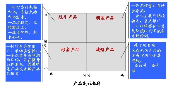 不同的產(chǎn)品承載著不同的市場使命,對寶亦德產(chǎn)品規(guī)劃中引入產(chǎn)品定位矩陣。明確了戰(zhàn)斗產(chǎn)品、明星產(chǎn)品、形象產(chǎn)品、戰(zhàn)略產(chǎn)品。從品類、口味、規(guī)格、定位、渠道、品牌等多個維度進行全新的產(chǎn)品陣營規(guī)劃,為下階段的市場開拓提供了強大的彈藥支持。