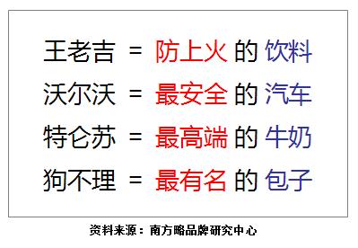 南方略咨詢機(jī)構(gòu)認(rèn)為,定位的本質(zhì)是在消費(fèi)者心智中建立起類似的等式。如果你夠細(xì)心的話,也許你已經(jīng)發(fā)現(xiàn)其中的微妙。紅色字體部分(防上火、安全、高端、有名)其實(shí)是品牌的價(jià)值屬性;而藍(lán)色字體部分(飲料、汽車、牛奶、包子)則是品牌的市場(chǎng)選擇所在。市場(chǎng)選擇界定了品牌將會(huì)“在哪里競(jìng)爭(zhēng)”,價(jià)值屬性則明確地回答了品牌“憑什么去競(jìng)爭(zhēng)”。品牌之所以要定位,不就是為了有利于市場(chǎng)競(jìng)爭(zhēng)么?這就是為什么競(jìng)爭(zhēng)大師麥克·