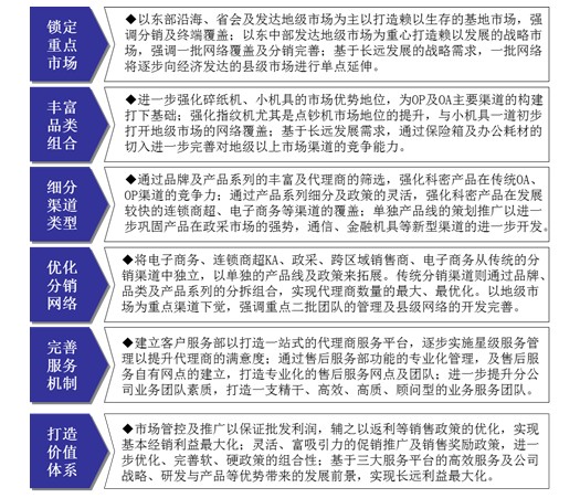 鎖定重點市場、豐富品類組合、細分渠道類型、優(yōu)化分銷網(wǎng)絡、完善服務機制、打造價值體系是“蜂巢工程”賴以成功的六大基石。