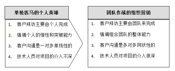 由單槍匹馬的個人英雄向團隊作戰(zhàn)的組織營銷轉(zhuǎn)變。