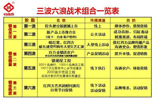 渠道推廣與市場(chǎng)拉動(dòng)相結(jié)合,快速打開知名度,并有效拉動(dòng)銷售,使得紅四方控釋肥新型高檔產(chǎn)品在樣板市場(chǎng)利鋒入市,順利啟動(dòng)。