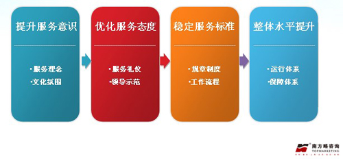 俗話說:“羅馬不是一天建成的”。要樹立嶄新的品牌形象、打造優(yōu)秀的服務(wù)體系也非朝夕之功,海泰必須遵循客觀規(guī)律循序漸進(jìn)。根據(jù)海泰的實(shí)際情況,南方略提出了服務(wù)體系建設(shè)四步曲:
