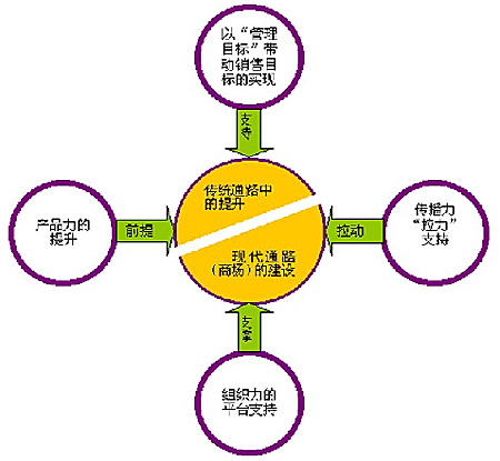 整個(gè)項(xiàng)目分為市場提升、品牌整合、管理基礎(chǔ)改進(jìn)和項(xiàng)目評估四個(gè)小項(xiàng)目,核心工作以得樂多公司四力關(guān)系圖而展開(如下圖)?! ?Br>