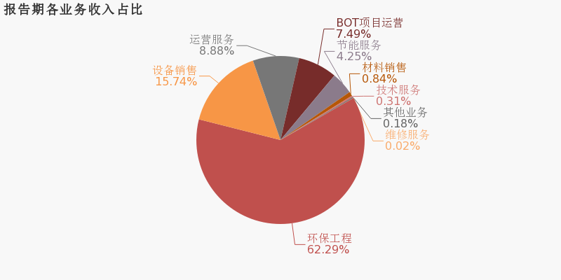 從業(yè)務(wù)結(jié)構(gòu)來看,“環(huán)保工程”是企業(yè)營業(yè)收入的主要來源。具體而言,“環(huán)保工程”營業(yè)收入為17億,營收占比為62.3%,毛利率為28.5%。