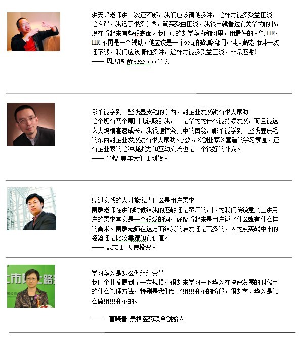4.有志于將企業(yè)打造成為像華為一樣具有國(guó)際競(jìng)爭(zhēng)力的企業(yè)領(lǐng)袖與高管。