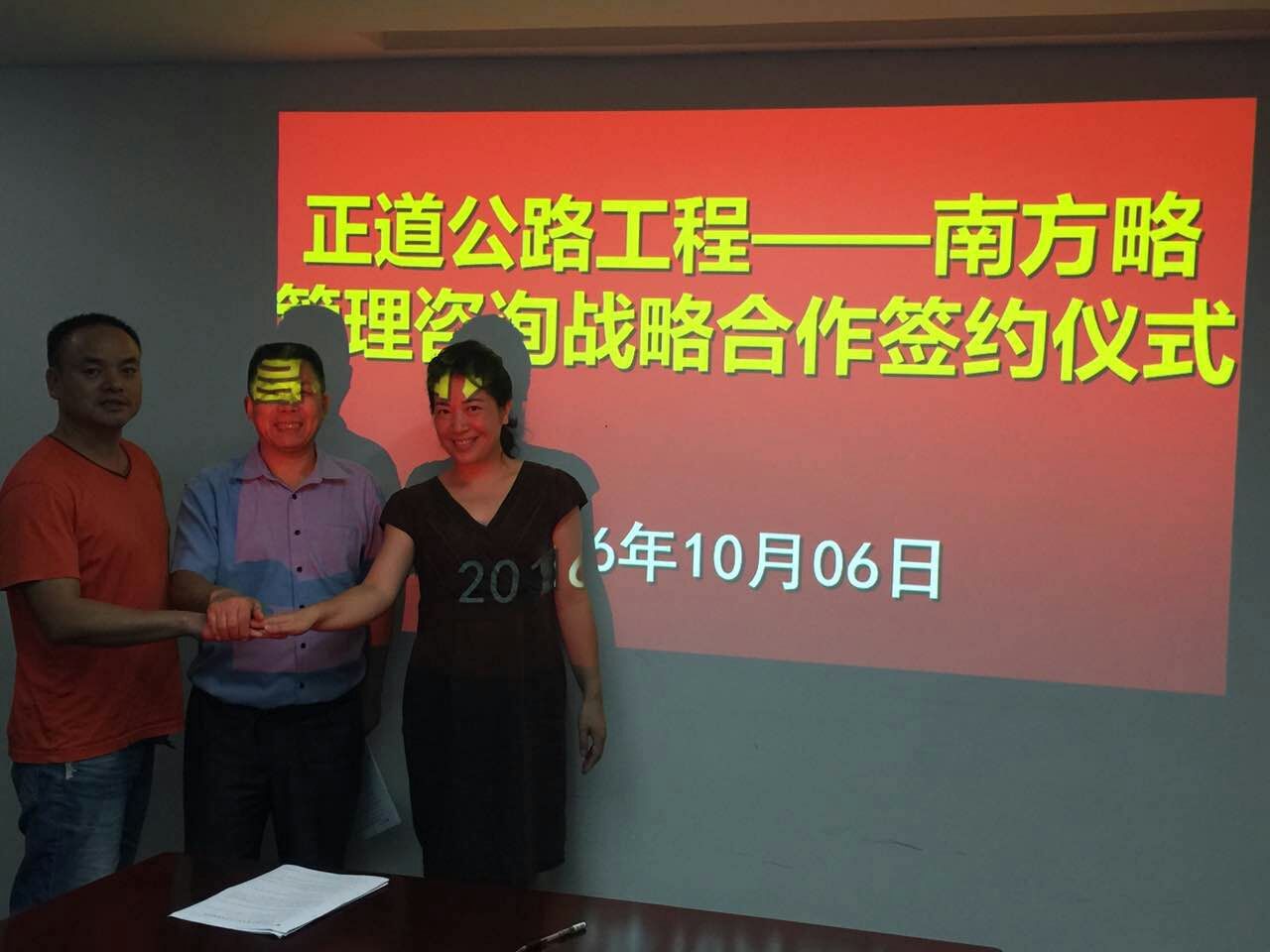 南方略董事長劉祖軻與董事長執(zhí)行董事長廖紅玲、尤總合影