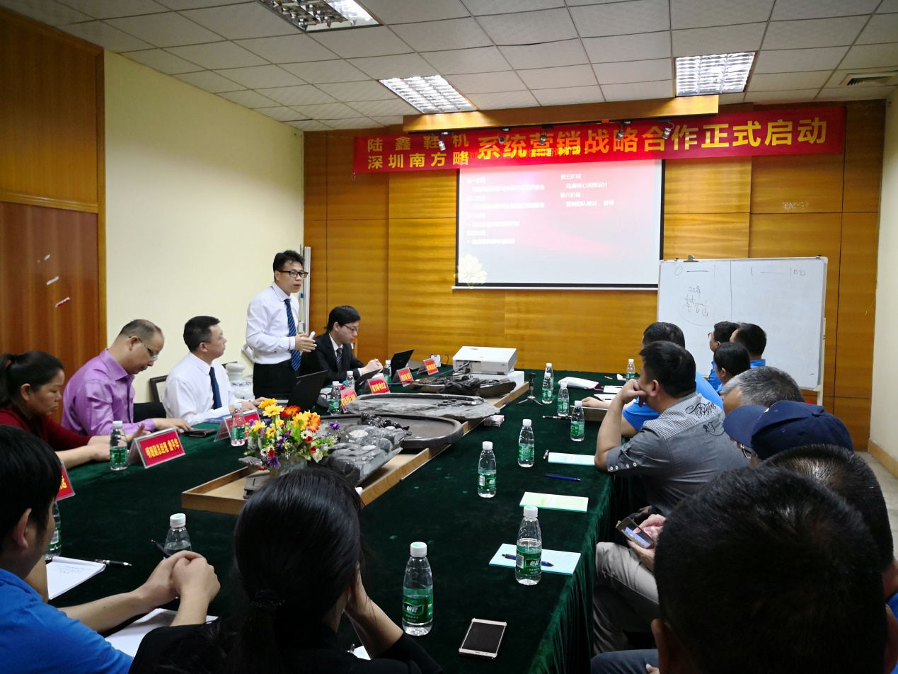 南方略咨詢公司高級項目經(jīng)理種文龍先生介紹了合作的具體內(nèi)容及項目的工作計劃,為陸鑫的未來發(fā)展,以客戶為導向、以數(shù)據(jù)為基礎(chǔ)、以事實為依據(jù),創(chuàng)造最佳的營銷解決方案,激發(fā)陸鑫團隊的活力,推動陸鑫邁上行業(yè)更高的高度,實現(xiàn)企業(yè)的夢想!