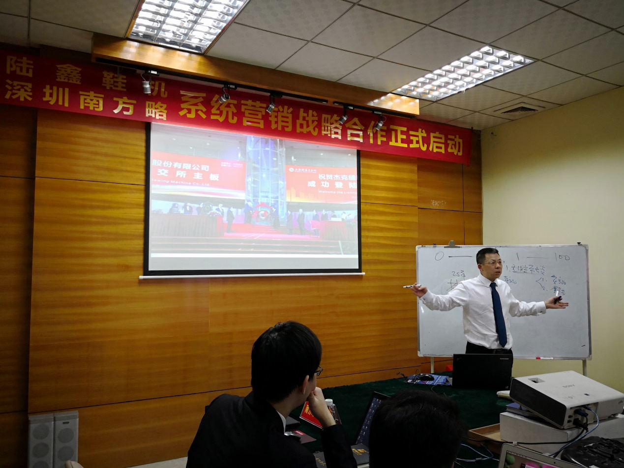 陸鑫總經(jīng)理助理詹鎮(zhèn)遠先生介紹項目的戰(zhàn)略意義及對雙方合作的期望,通過二次創(chuàng)業(yè),實現(xiàn)陸鑫鞋機的蓄能騰飛!